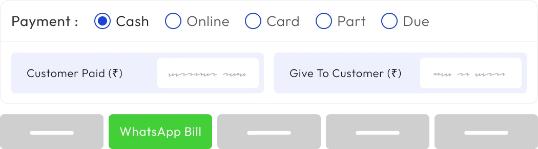 - Instantly send bills via WhatsApp to reduce paper usage.